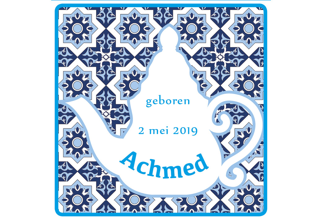 Marokkaans tegelpatroon, samen met een theekan, symbool voor geluk. Een hartjesvorm is ook mogelijk.